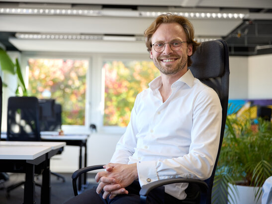 Marc Götti, Mieter in einem mit Zehnder Deckenstrahlplatten sanierten Büro