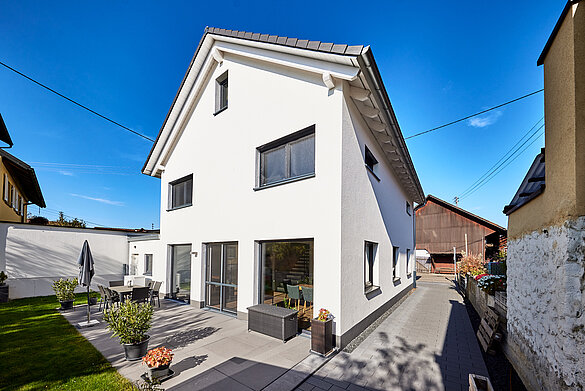 Die moderne Haustechnik des Einfamilienhauses in Dasing bei Augsburg erfüllt sämtliche Ansprüche an energieeffizientes Wohnen. Für Bauherr Daniel Schaffer spielte neben einem nachhaltigen Wohnkonzept auch das Thema „Frische Raumluft“ eine zentrale Rolle. „Als Allergiker lege ich großen Wert auf gute Wohnraumluft. Ein Lüftungsgerät mit integrierten Pollen- oder Aktivkohlefiltern verhindert, dass Schadstoffe und unangenehme Gerüche der nahen Landwirtschaft in den Wohnbereich gelangen. Das hilft mir sehr und reduziert spürbar meine allergiebedingten Beschwerden – Zuhause kann ich Durchatmen.“, erklärt Herr Schaffer seinen Standpunkt für die Relevanz von frischer Luft in Innenräumen.