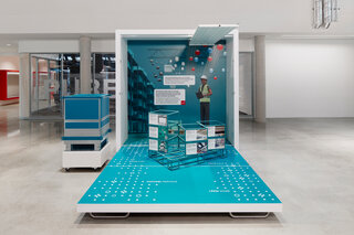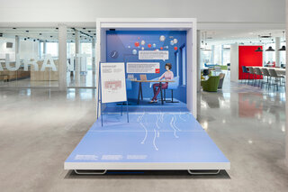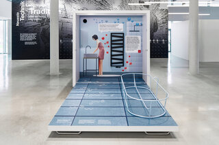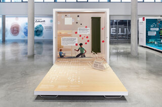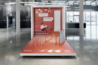 Fünf kompakte Ausstellungsmodule, die sogenannten „Pop-ups“, präsentieren die Lösungen von Zehnder in jeweils unterschiedlichen Lebenswelten. Dabei nehmen sie auf der Vorderseite die Nutzerperspektive ein und bilden auf der Rückseite die technische Ebene ab.