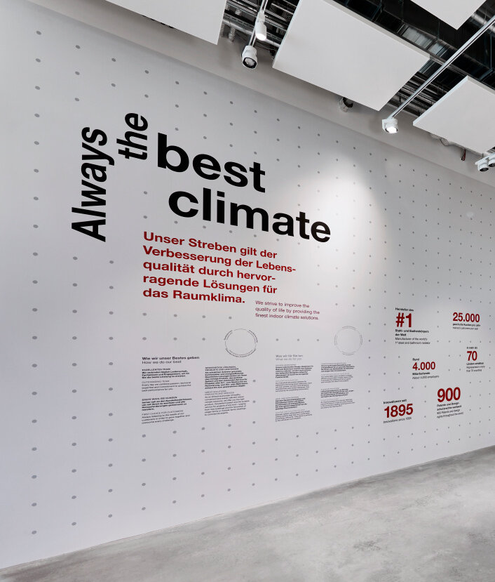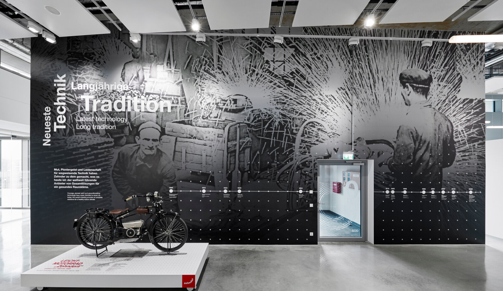 Der Markenerlebnisraum macht auch Marke und Unternehmen für Besuchende leicht zugänglich. Mit einem Spannungsbogen vom historischen Erbe bis zu den Megatrends von Morgen wird sichtbar, wie Zehnder sich heute und in Zukunft aufstellt, um „always the best climate“ für seine Kunden einzulösen.