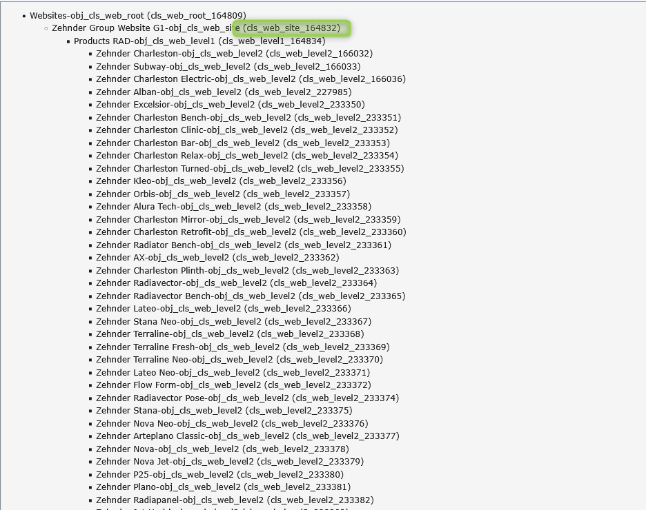 • Classification value looks like this “cls_web_site_164832” and can be copied to the next level of check - the classification details