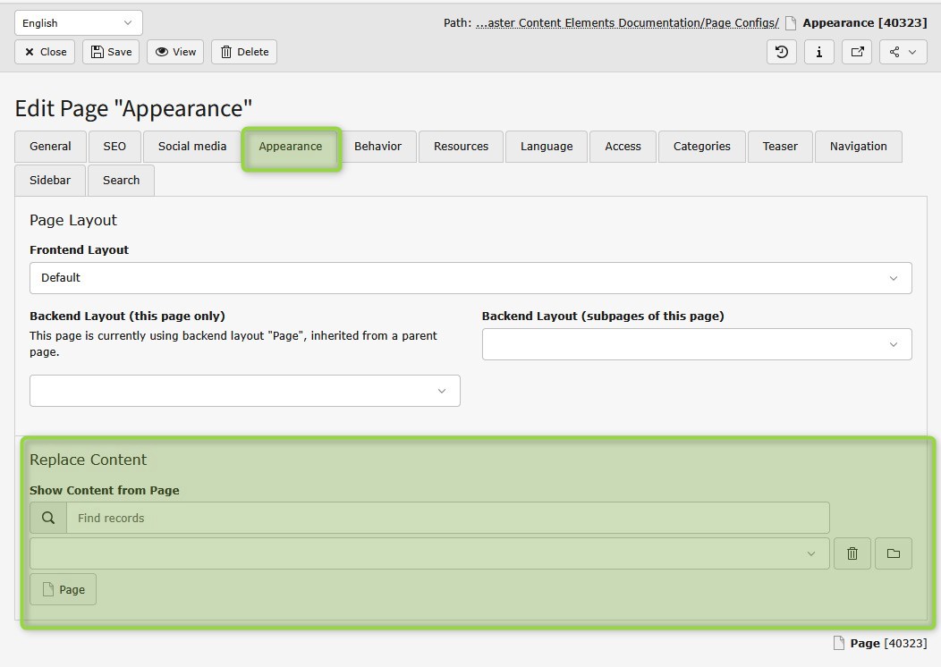This functionalities offers the possibility for “standard” pages to display the content of another page within the tree.