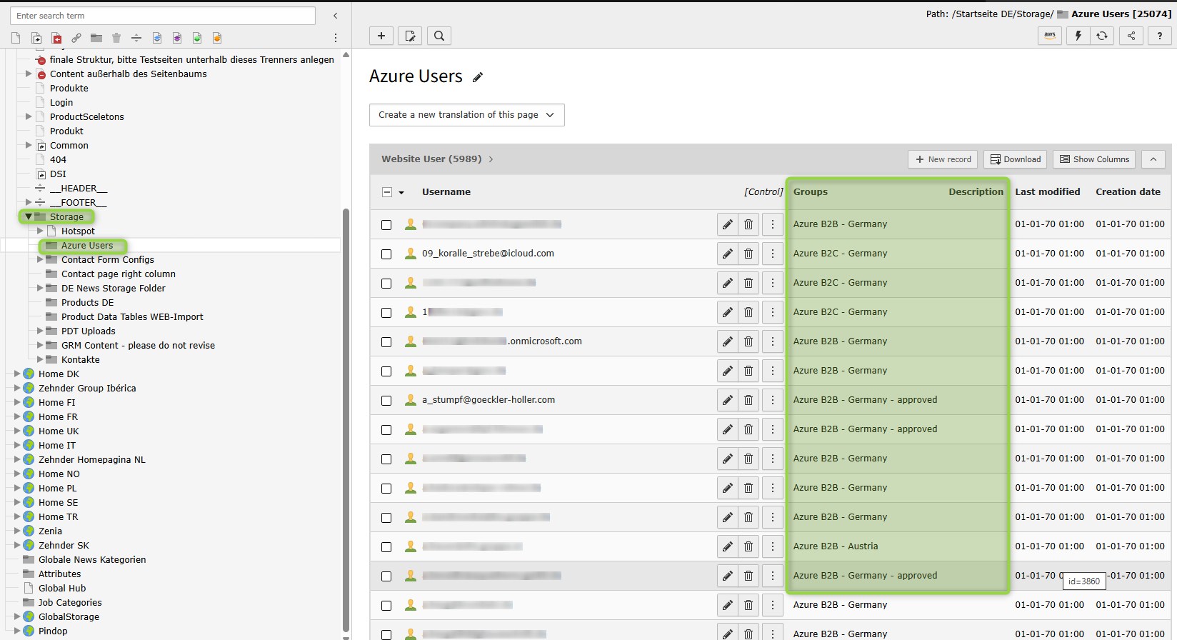 • Successful logins will create Azure user Groups in Typo3 Backen