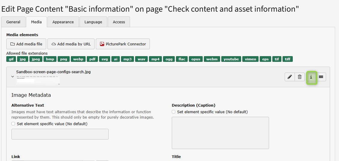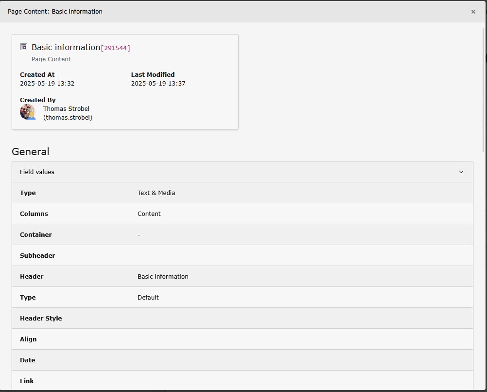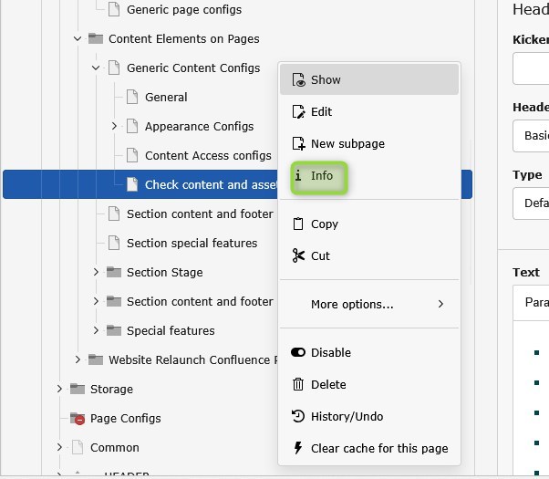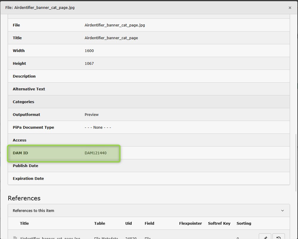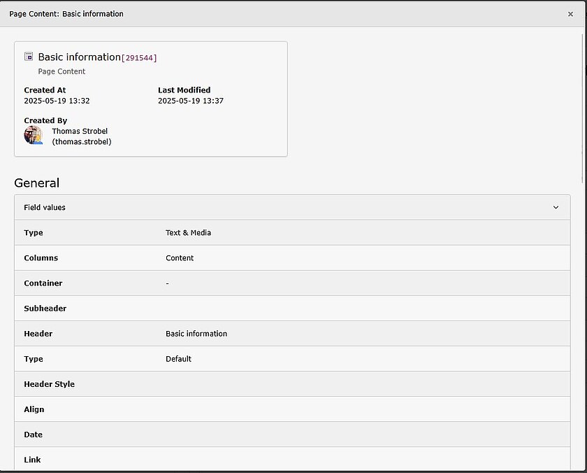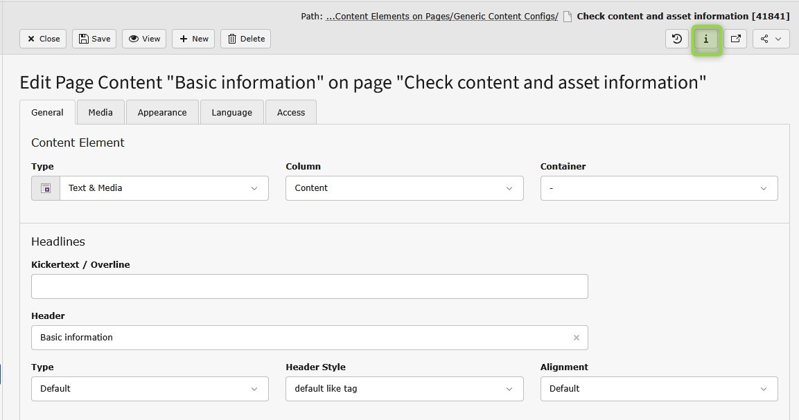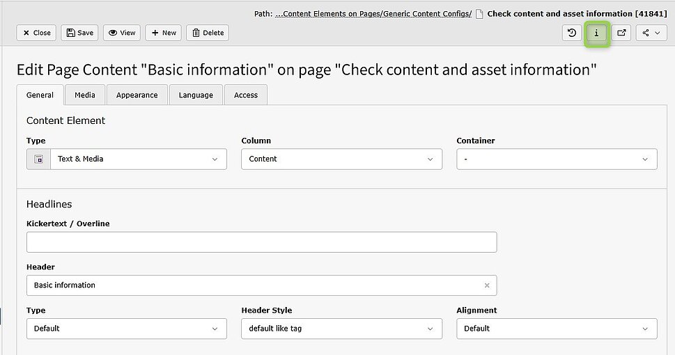 • “References” show dependencies to other content elements where current element is linked or integrated