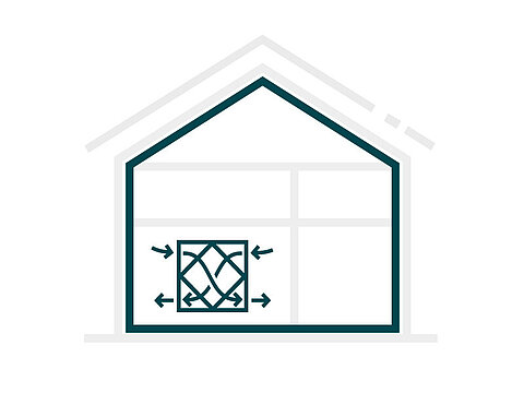 Decentralised ventilation provides a single room in the house with fresh air. The ventilation unit is installed directly into the exterior wall of a bedroom, study etc. Existing heat or cold in the room is reused.