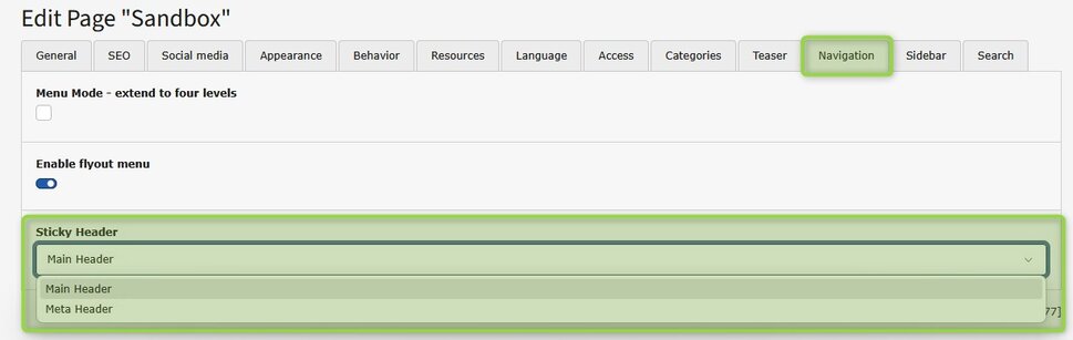 Since 01/2026 it's possible to decide per tree whether the meta navigation or main navigation is sticky