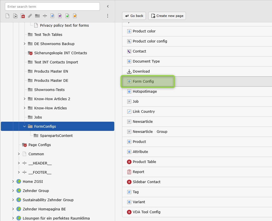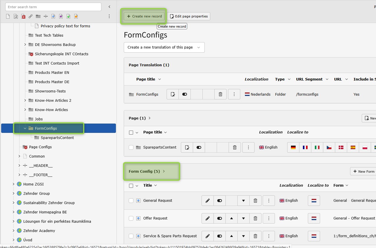 Plugin which is connected to Typo3 role “Redakteur - FormConfig”