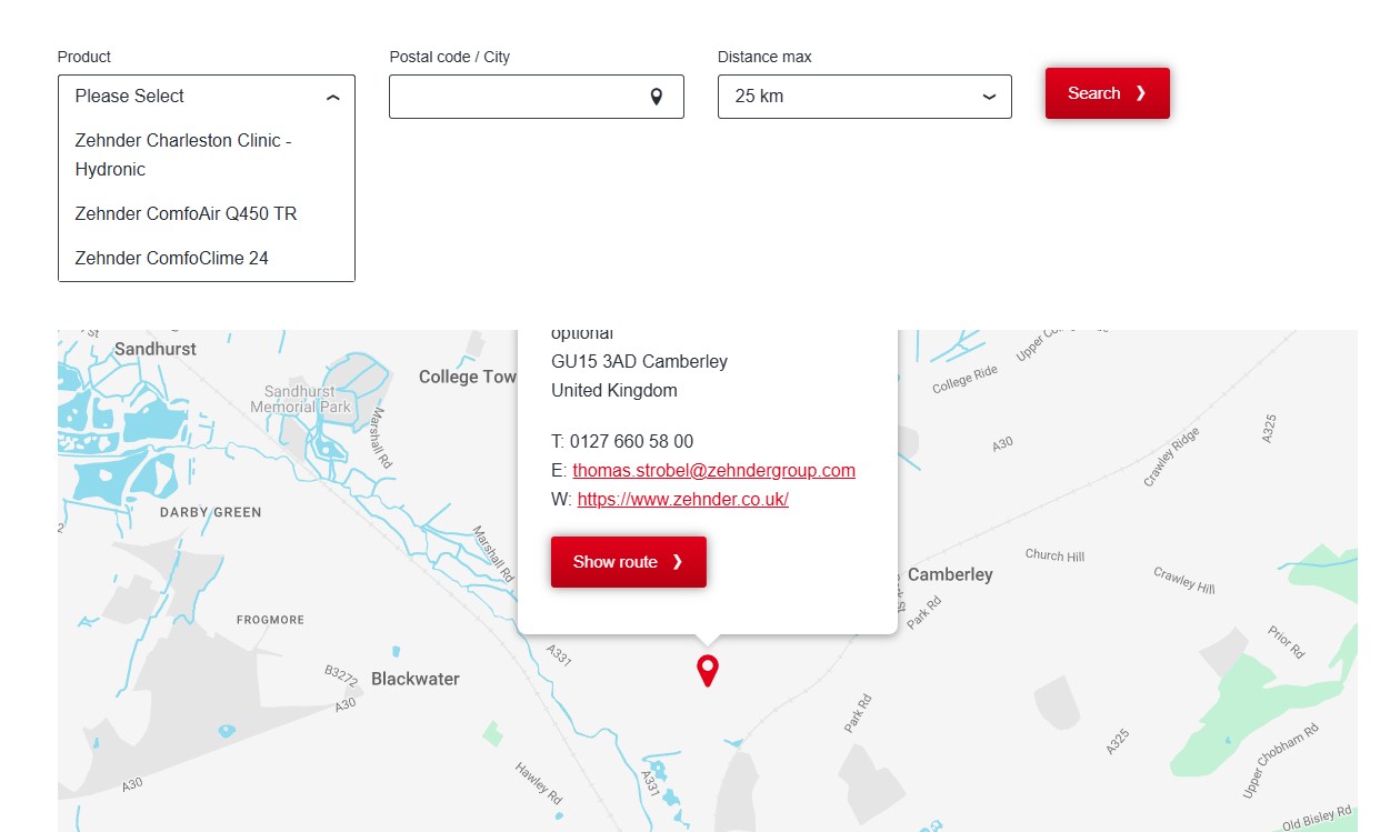 • Possibility to mix both in one frontend search which will offer a drop-down selection to filter for installers or showrooms
