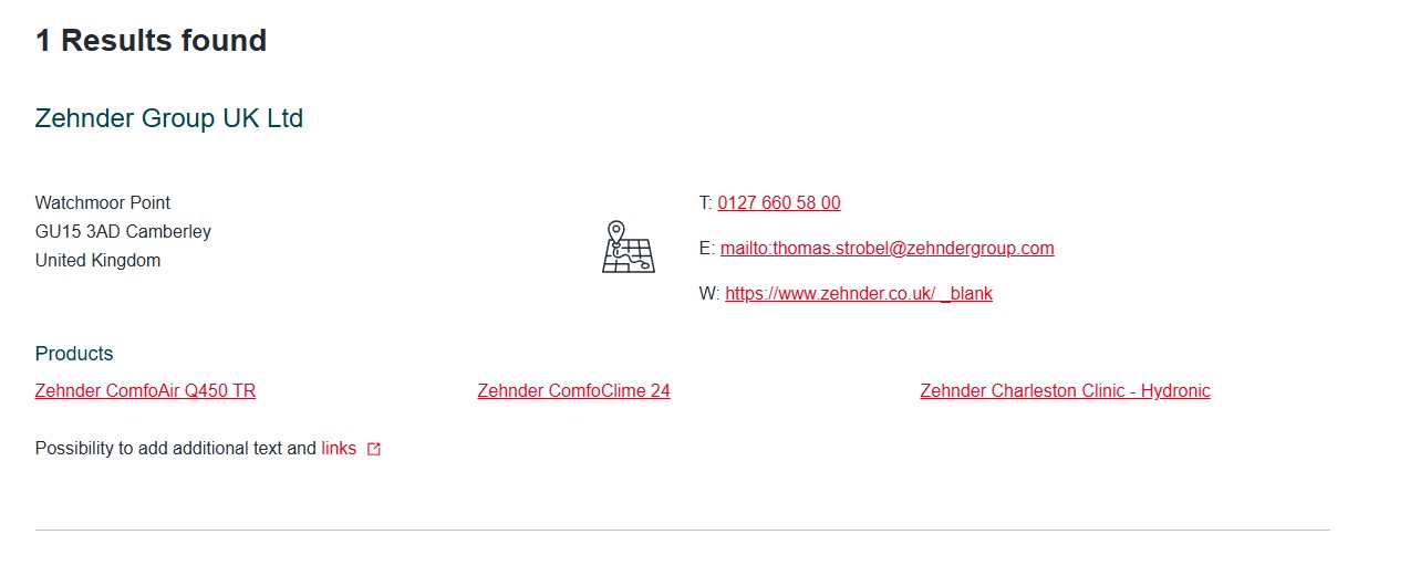 • possibility to connect Zehnder PIM product IDs and link to product detail pages