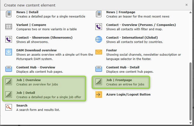 • content element similar to "news" but with dedicated job-offer related categories