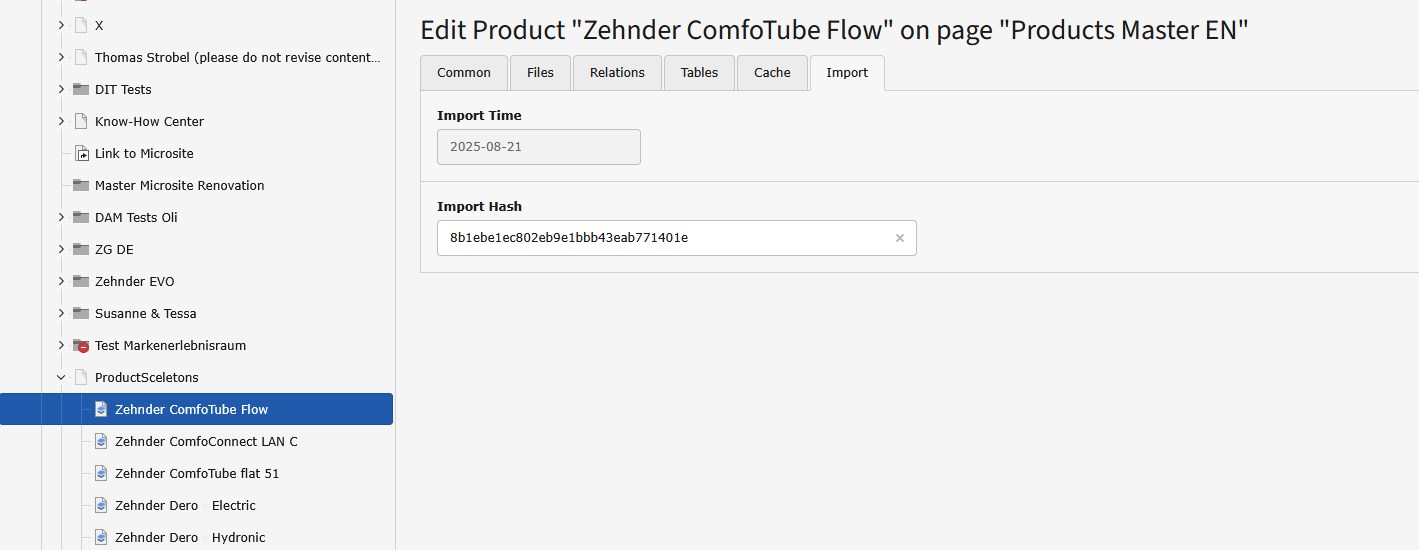 import date and unique “Hash” ID of the latest import process is available and can be deleted to trigger new import process of related product in case Mongo DB data is fine but new data hasn't been imported within the normal import process