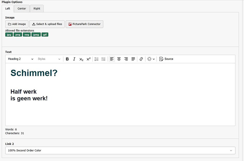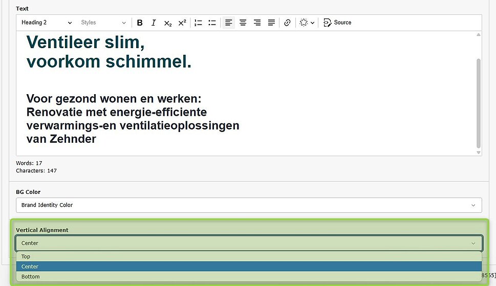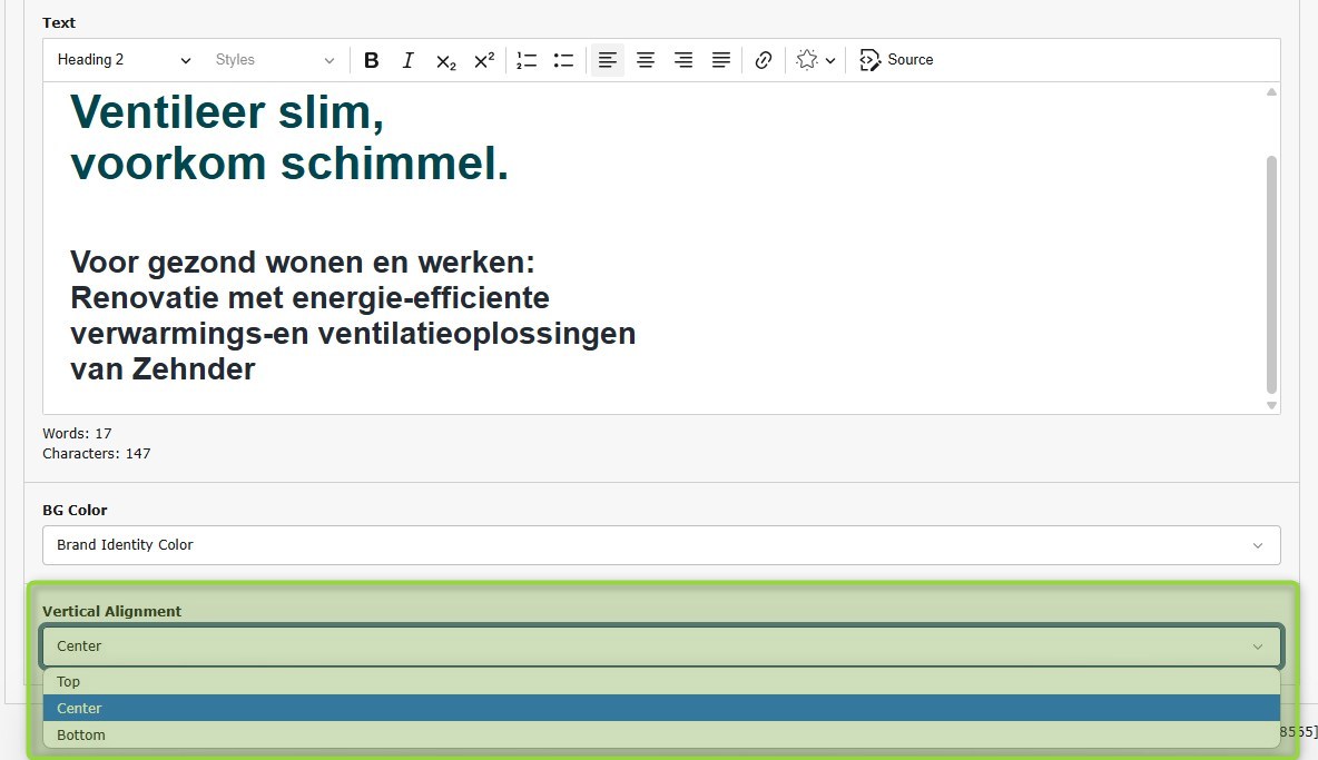 Next to already present horizontal aligment present by the RTE editor, we also integrated vertical alignment configerable in the Typo3 backend as additional selection.