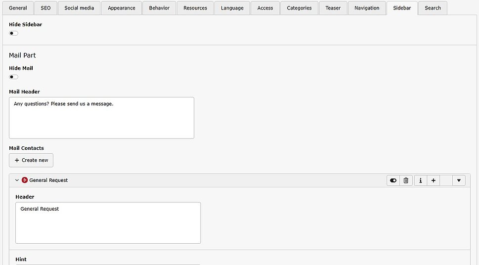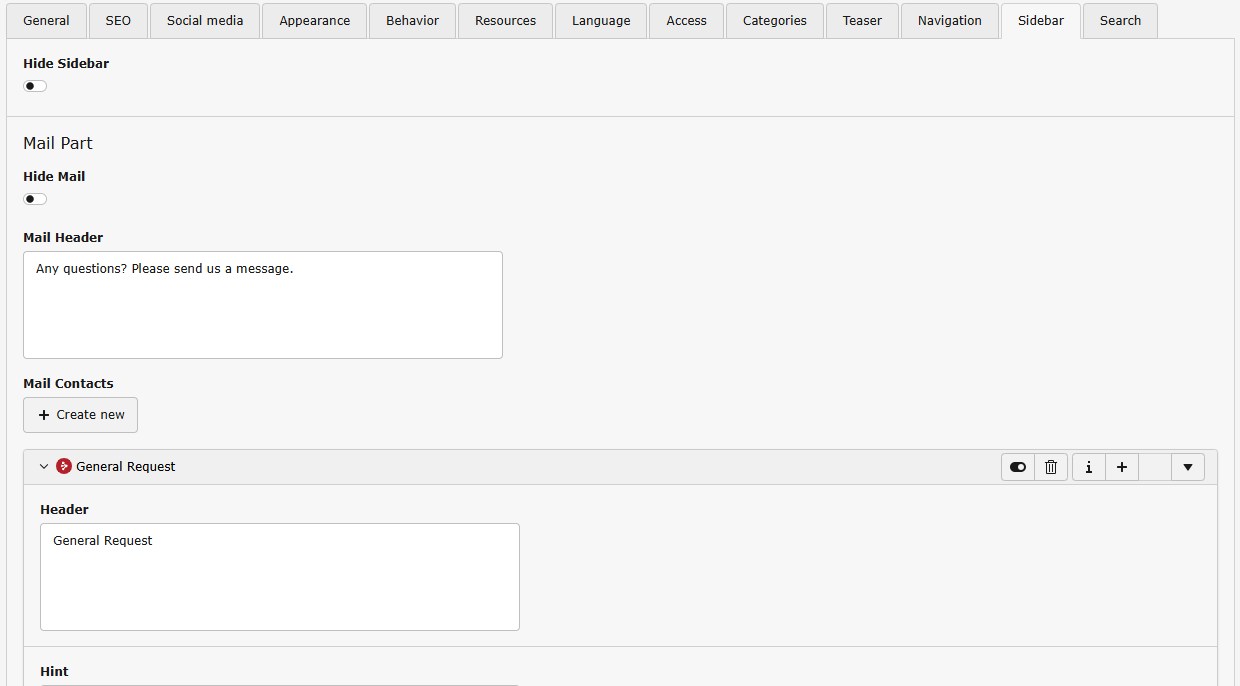 • This tab represents the configuration for the sidebar element