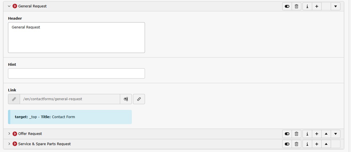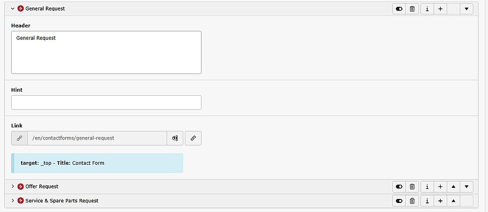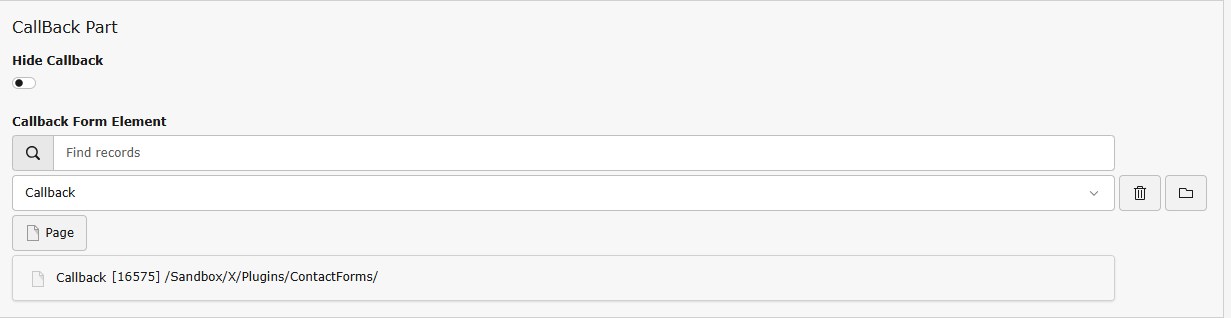 • Callback Form Element connects the section to a pre-configured Typo3 form element
