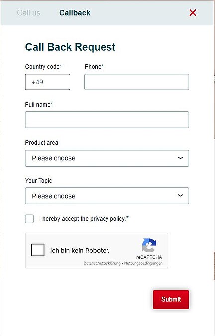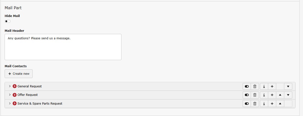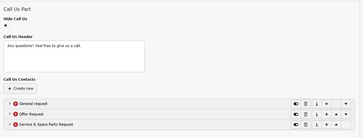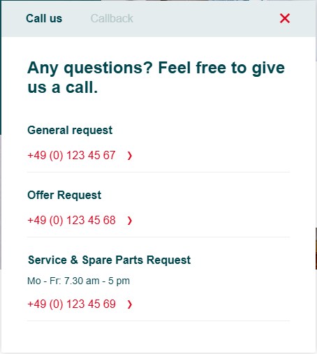 • Mail / Call us / Call back Contacts Header will show up as headline above the email-address or form link