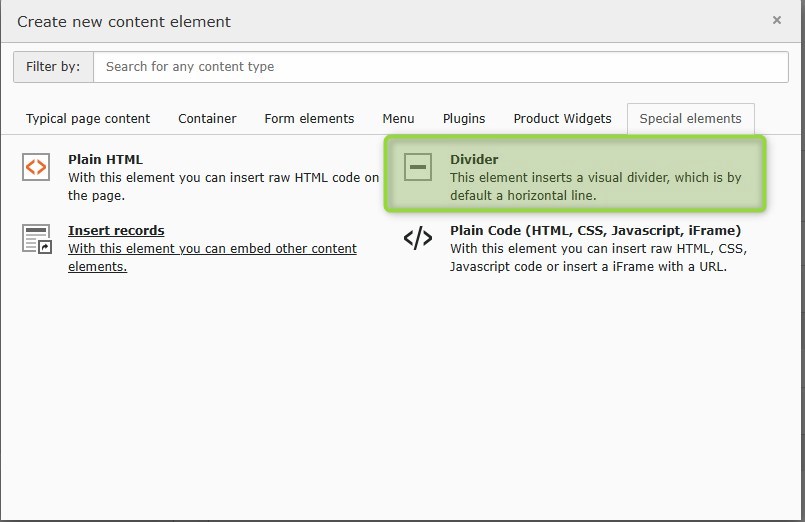 • content element to create optical separation of content elements through a dividing line.
