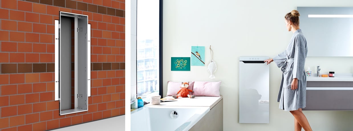 Even installing Zehnder Zenia is as simple as can be. As the process is carried out in two phases, the risk of causing damage at the site is kept to a minimum. The unit itself is not actually installed until all the dry-wall, rendering, tiling and painting work is complete.