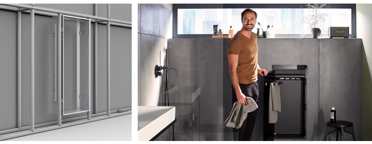 next to the shower or bathtub (IP44 degree of protection). Its low installation depth, measuring