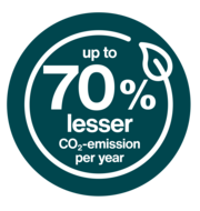 The heating system with the lowest CO2-emissions is radiant ceiling panels with heat pumps. Compared to the other systems, CO2-emissions can be reduced by up to 70 %. In second place are radiant ceiling panels with gas boilers, which enable savings of up to 27 %.
