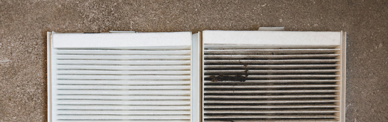 Dans cette image, vous pouvez voir un filtre neuf et inutilisé à gauche et un filtre qui a filtré pendant 3 mois à droite. Cela montre l'importance de remplacer régulièrement les filtres pour garder l'air pur.