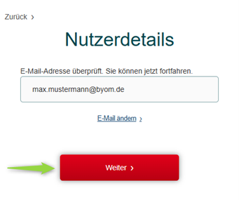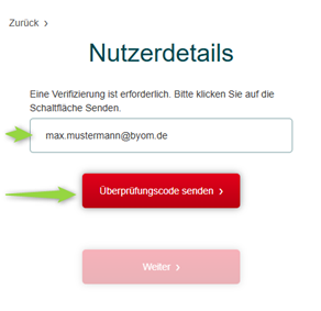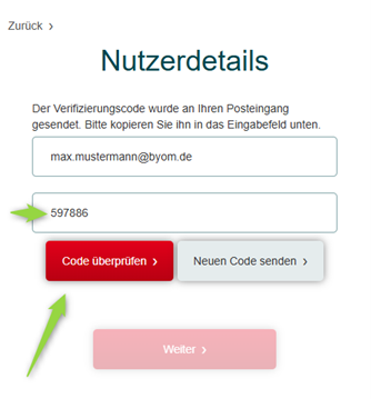Dans l'étape suivante, vous indiquez votre adresse e-mail. Vous recevrez un code de vérification par e-mail. Avec le code de vérification, vous confirmez votre adresse e-mail.