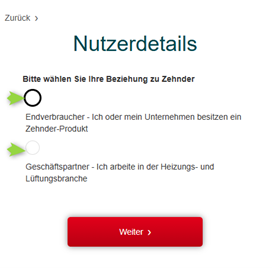 Lors de la création de votre compte d'utilisateur Zehnder, vous pouvez choisir entre un compte d'utilisateur final et un compte de partenaire commercial.