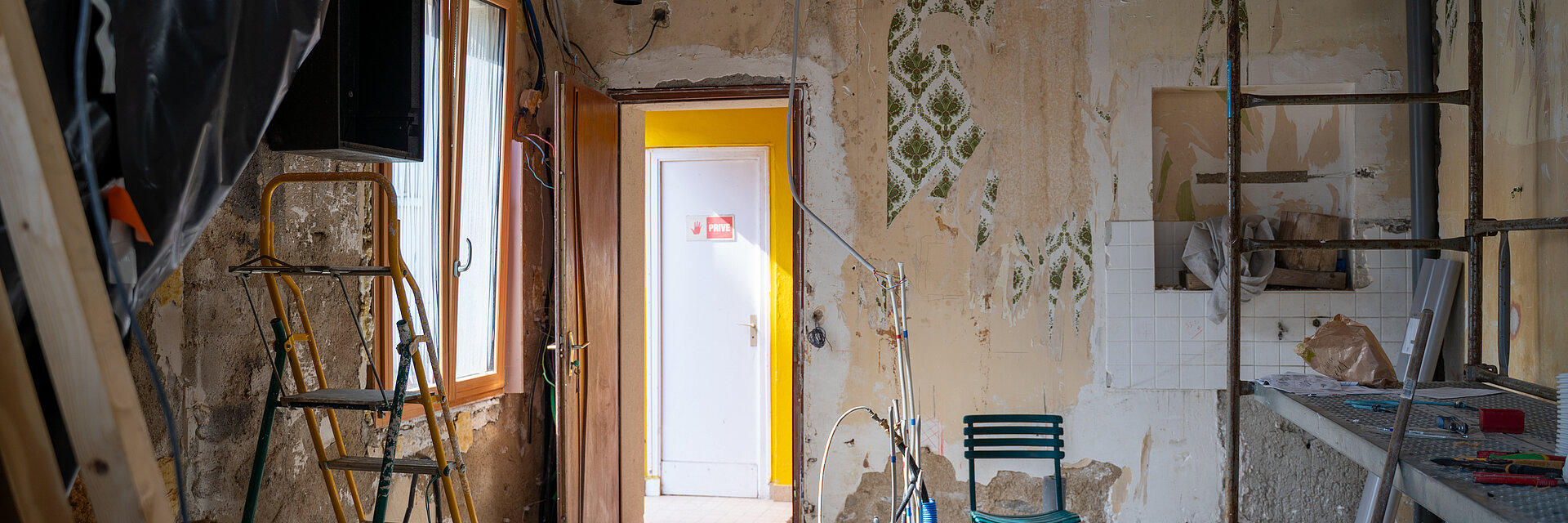 À Binic, près de Saint-Brieuc (22), un ancien local commercial fait l’objet d’une rénovation complète en vue de sa transformation en un logement locatif de type T2. Ce projet de réhabilitation, situé dans un espace restreint d’environ 45 m², comprend une pièce de vie, une cuisine et une salle de bains/wc au rez-de-chaussée, ainsi qu’une chambre à l’étage.