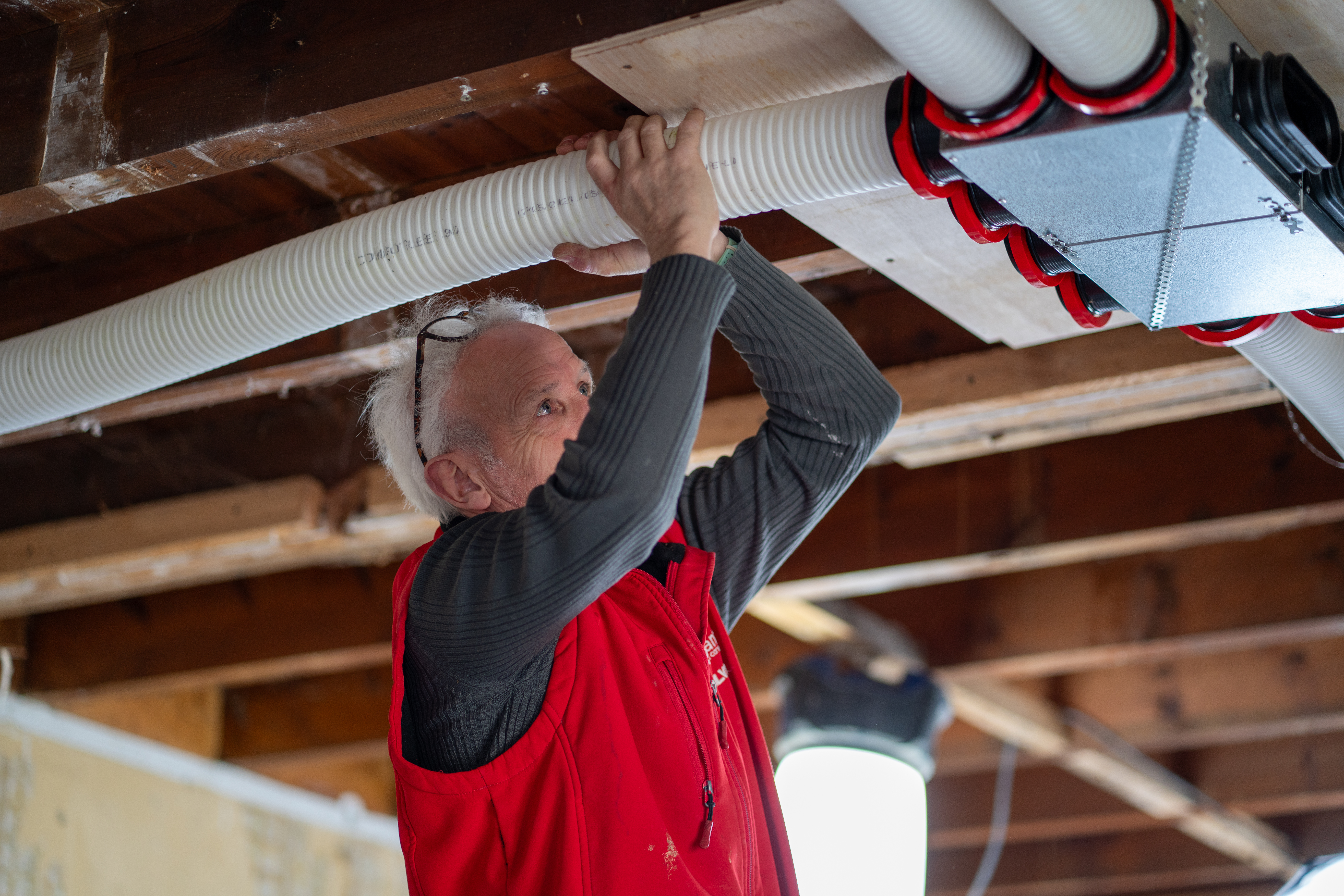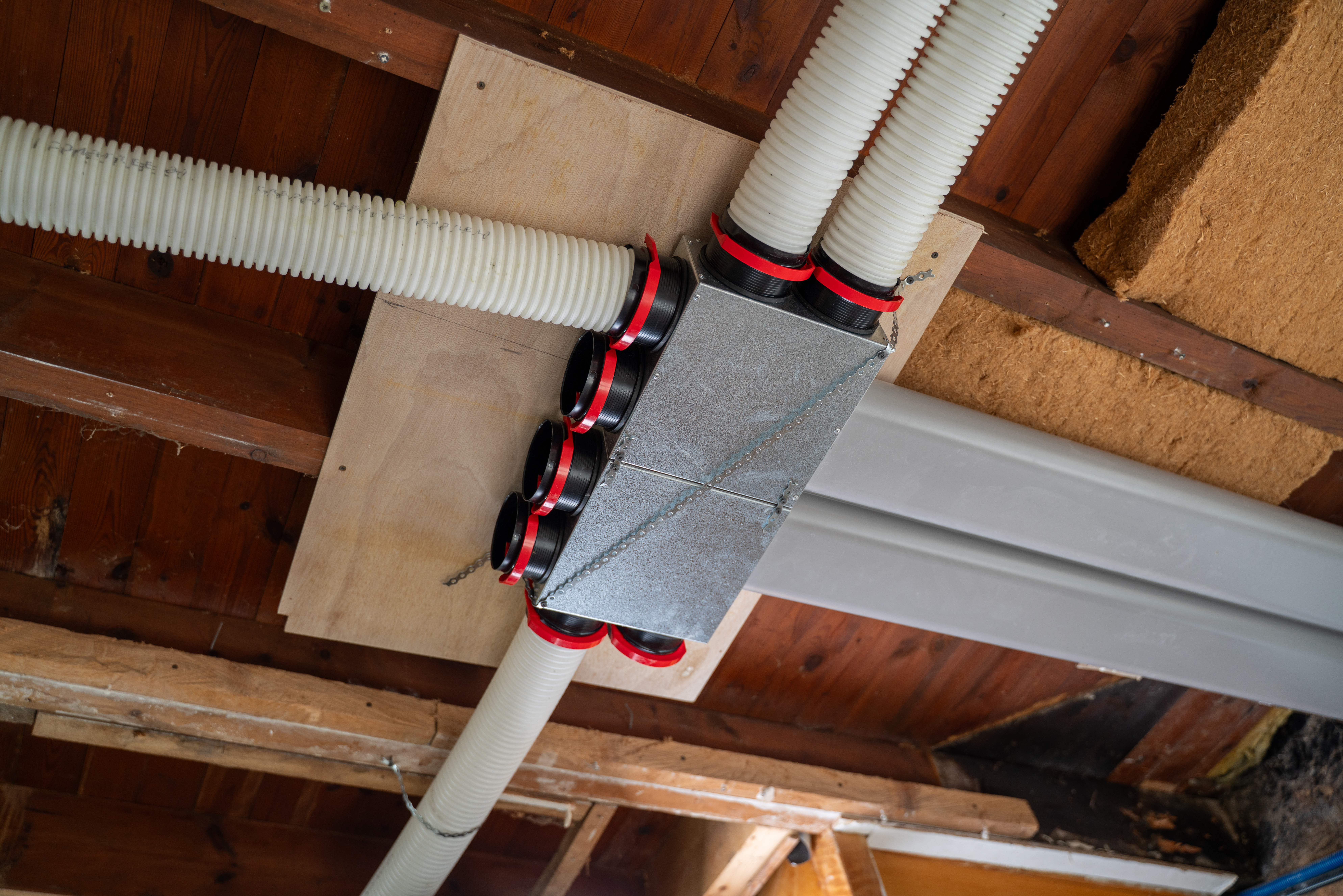 Autre avantage clé : la simplicité de mise en œuvre. Grâce au caisson de distribution CK300 et au système de connexion RapidLock, le réseau de gaines a pu être limité et optimisé pour s’adapter à la configuration restreinte des lieux. L’installation s’est déroulée en un temps réduit : en seulement 2 jours, l’équipe de l’entreprise LE GALL, installateur Parten’Air Zehnder, a pu réaliser les perçages de façade pour les grilles d’entrée et de sortie d’air, poser la machine et mettre en place l’ensemble du réseau.