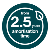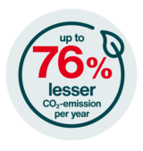 La maggiore efficienza energetica e il minor consumo di energia riducono le emissioni di CO₂ fino al 76% all'anno e consentono quindi un funzionamento sostenibile e rispettoso dell'ambiente.