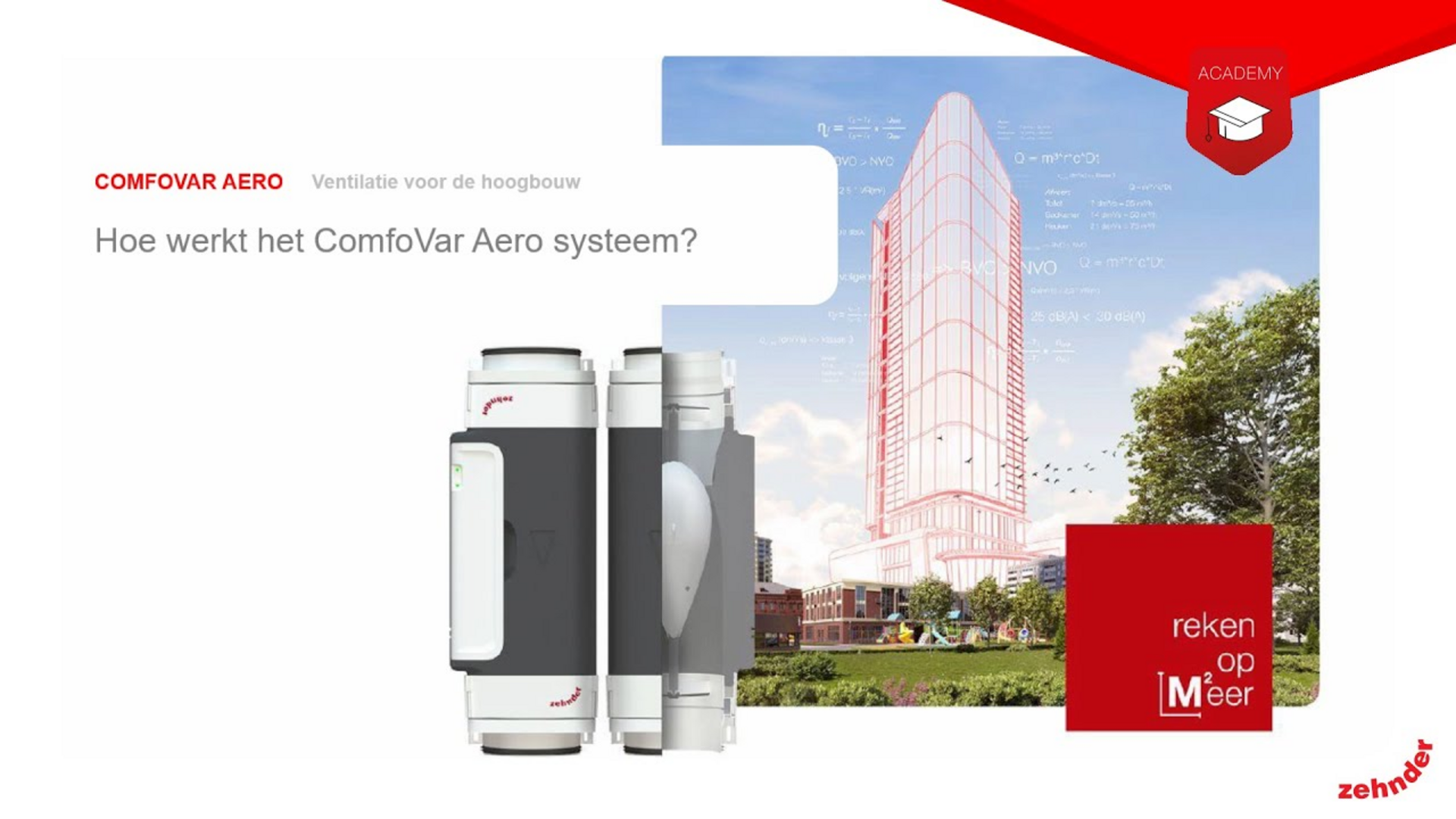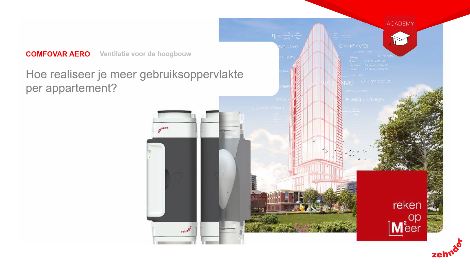 Ontmoet de Zehnder ComfoVar Aero. Een innovatief ventilatiesysteem met de collectieve wtw-unit op het dak of in de collectieve technische ruimte. Zo reken je op meer vierkante meters per appartement en geniet je van een flexibele en schaalbare renovatie- én transformatie-oplossing voor verschillende gebouwgroottes. Door de aparte luchtbehandelingskast op het dak en de minimale afmetingen in de appartementen zelf, een ideale oplossing voor woningen waar ruimte schaars is.